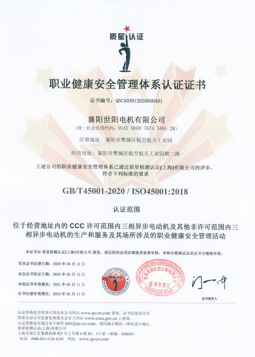 職業(yè)健康安全管理體系認(rèn)證證書